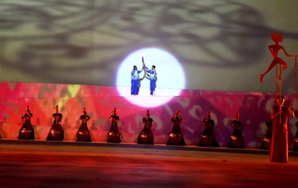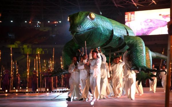 Yang menjelujuri upacara tersebut ialah pertunjukan yang kolosal, gembira dan menyerap perhatian puluhan juta rakyat Indonesia serta di seluruh kawasan. (Foto :AFP/VNA)