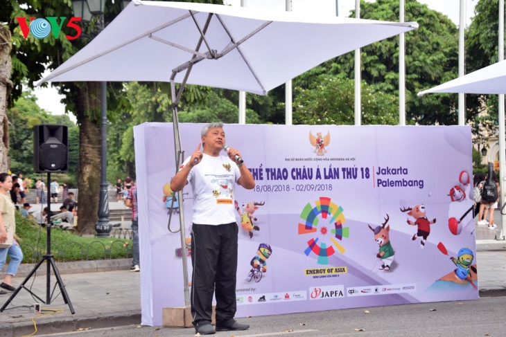 (VOVWORLD) - Pesta Olahraga Asia 2018 (ASIAD 18) diadakan Kedutaan Besar Republik Indonesia di Vietnam pada Minggu sore (12/8) di jalan untuk pejalan kaki Kota Hanoi dengan banyak aktivitas yang bergelora.
