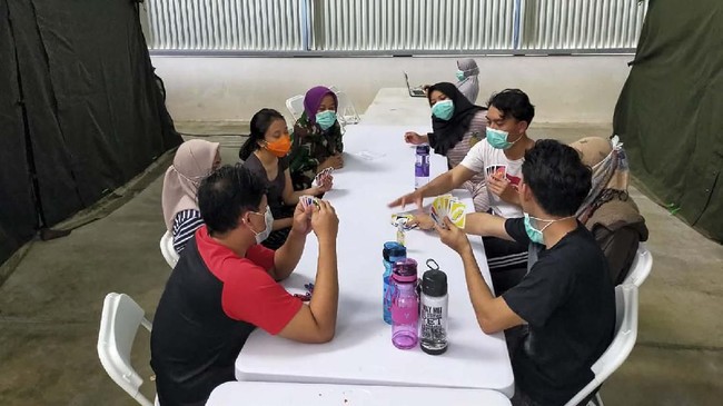 Selain 70 personil kesehatan yang dimobilisasi untuk memeriksa kesehatan dan mengontrol situasi wabah di tempat karantina, juga ada para pakar psikolog untuk menyemangati mereka.