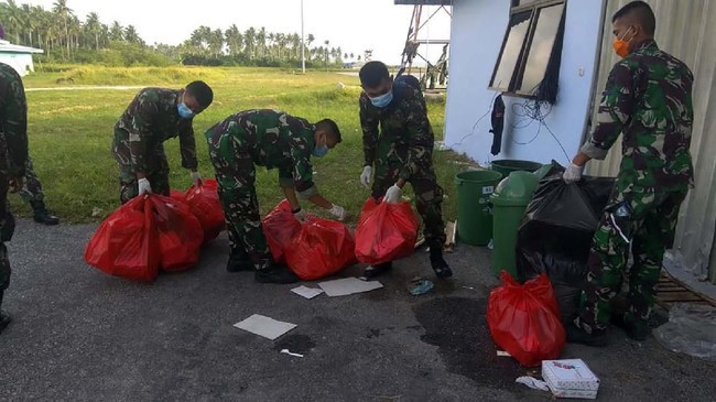 Para serdadu mengabdi kegiatan karantina dan pencegahan serta penanggulangan wabah karena Virus Corona tipe baru selama 14 hari di pangkalan militer.