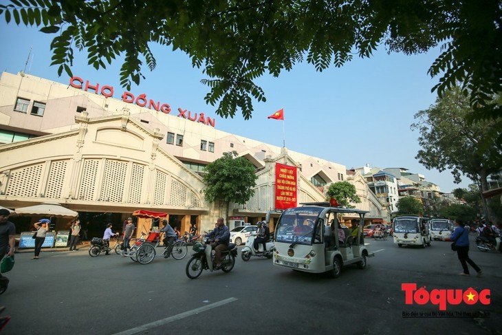 Pasar Dong Xuan, tempat tentara menguasai Ibu kota lewat untuk berkumpul di Benteng kuno Hanoi. (Foto: Bao Trung/toquoc.vn)