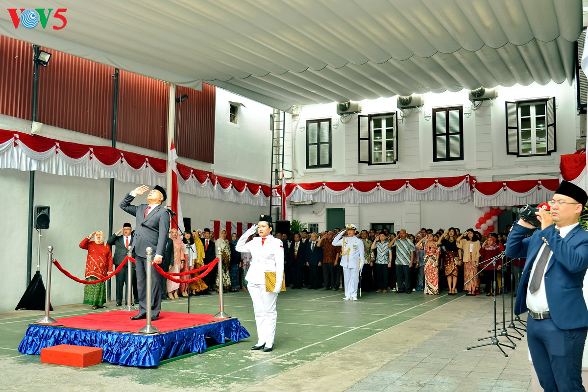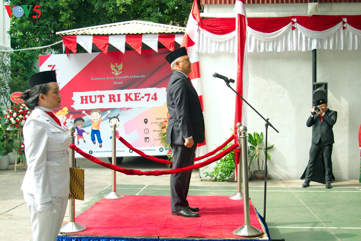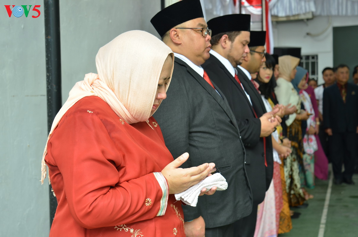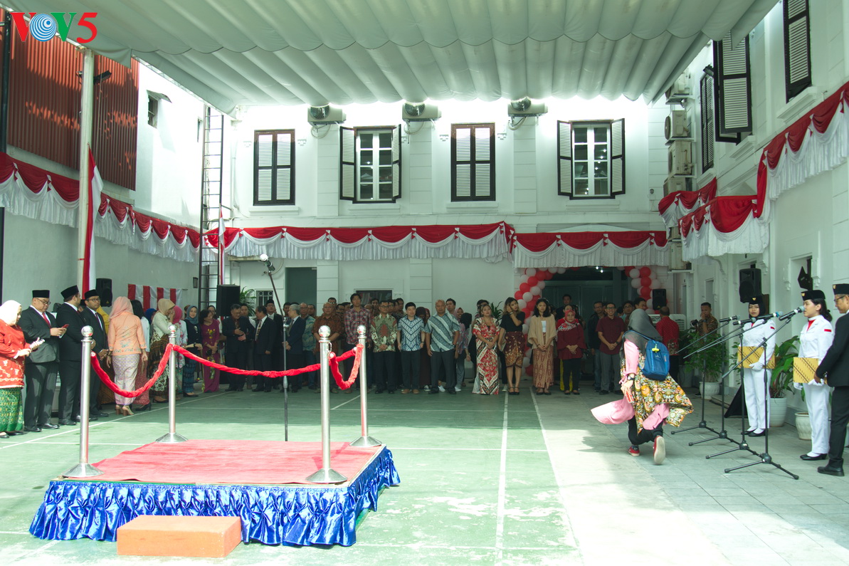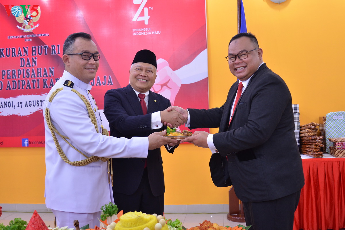 Setelah acara pengibaran bendera, KBRI mengadakan acara memotong tumpeng tradisional