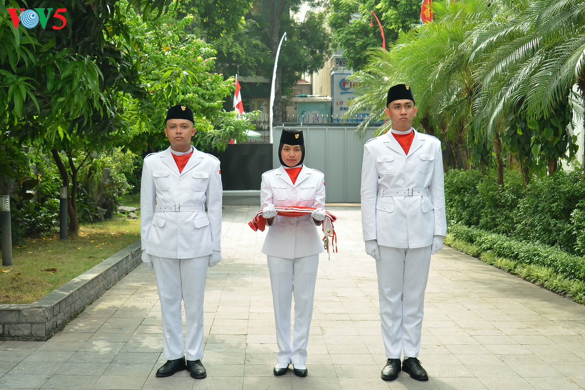 Dubes RI Ibnu Hadi berfoto bersama dengan pasukan pengibar bendera