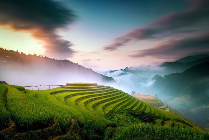 Mu Cang Chai adalah salah satu tempat untuk memandangi sawah terasering terindah di daerah pegunungan di Vietnam Utara. Foto: VOV2