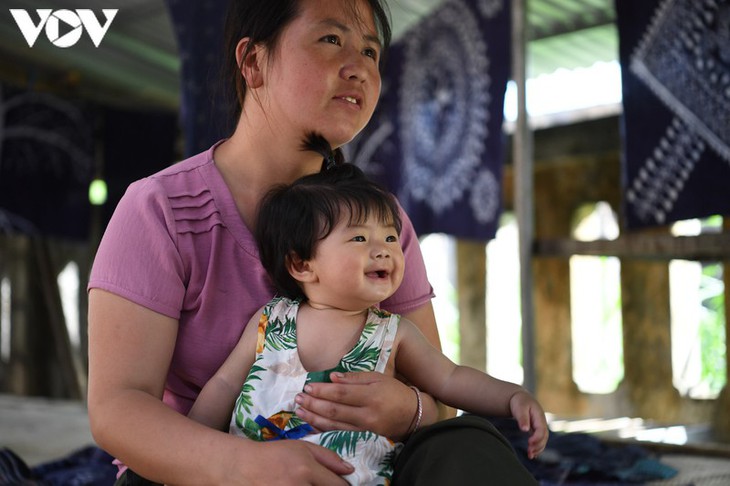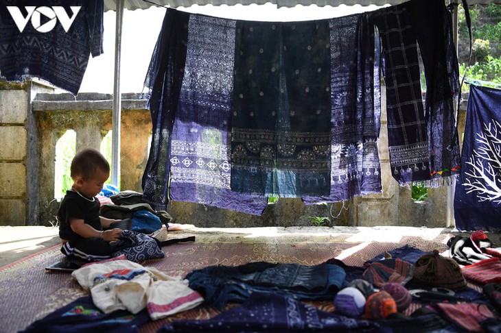 Seorang perempuan Mong dengan antusias memperkenalkan busana bernilai jutaan VND.