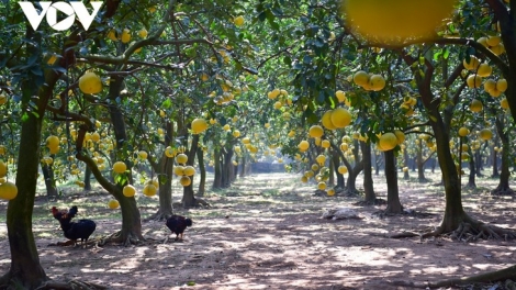 (VOVWORLD) - Lihat buah-buahan jeruk bali yang berwarna keemasan dan beraroma menandakan Hari Raya Tet datang.