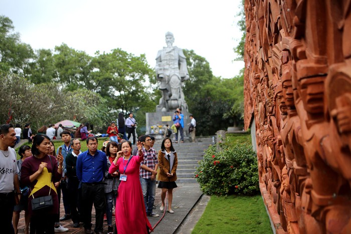 Pada waktu mendatang, setiap wisatawan bisa memandangi relief keramik raksasa dengan isinya yang menjelujuri sejarah bangsa Viet Nam tentang perang perlawanan menentang Yuan Mongol. Gambar yang menuliskan kisah yang panjangnya 45 meter dan tingginya 2,5 meter dirakit dari 265 batu bata dan diciptakan oleh Hoang Nhan dan Vu Ngoc Thach. Batu-batu bata ini dibuat oleh para tukang di desa Cay, Kabupaten Binh Giang, Provinsi Hai Duong. Saudari Tra My, wisatawan asal Provinsi Lam Dong memberitahukan: “Saya untuk pertama kalinya datang ke sana, pemandangan alamnyabenar-benar indah permai. Ketika berdiri di puncak gunung, saya bisa memandangi seluruh daerah dataran rendah luas yang dikelilingi oleh sungai Kinh Thay. Ini tidak hanya merupakan satu tempat spiritualitas, melainkan juga merupakan satu destinasi wisata yang menarik bagi para wisatawan”.