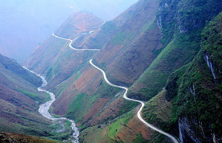Dari Quan Ba ke Dong Van, tempat yang dianggap sebagai tempat paling ujung dari Tanah Air Vietnam, ruas jalan yang panjangnya 100 Km lebih melewati tempat-tempat seperti Pintu gerbang Quan Ba, Gunung Co Tien, zona situs peninggalan sejarah nasional yaitu vila keluarga marga Vuong, Tiang Bendera Nasional Lung Cu. Bersamaan itu ialah pemandangan-pemandangan alam yang tersembunyi di tengah-tengah awan di lereng gunung atau tersembunyi di belakang bayangan pohon yang menggeliat untuk menyambut terik sinar mata hari. Banyak turis ketika datang ke Daerah Dataran Tinggi Batu Dong Van semuanya berharap akan dapat melewati gunung Ma Pi Leng, salah satu diantara empat puncak gunung besar di daerah pegunungan di Vietnam Utara, dengan barisan-barisan batu dan gunung-gemunung yang berlapis-lapis. Para sarjana Perancis dari ratusan tahun lalu telah menyebut puncak gunung Ma Pi Leng dan Taman Geopark Global sebagai satu “patung monumen geologi”. Puncak gunung Ma Pi Leng dianggap sebagai daerah pusaka yang khas tentang geologi dan lanskap, serta daerah puncak gunung dinilai sebagai salah satu tempat-tempat yang mengawasi seluruh panorama lanskap yang paling indah di Vietnam. Bersamaan itu juga ada jurang sungai Nho Que yang adalah salah satu diantara lembah-lembah sedimen yang tidak ada duanya di Vietnam. Saudari Ngoc Anh, turis kota Hanoi memberitahukan: “Untuk pertama kalinya datang ke daerah dataran tinggi batu, saya tidak berfikir bahwa Vietnam punya satu lanskap seperti itu. Ketika menempuh daerah daerah dataran tinggi batu yang megah ini, sawah-sawah bunga gandum kuda yang luas, sawah-sawah padi terasering yang kuning telah mempesonakan hati manusia. Meskipun jalan-nya masih sulit ditempuh, tapi dengan mata kepala sendiri menyaksikan lanskap, ini merupakan tempat yang patut dilihat. Saya sunggung-sungguh merasa heran atas lanskap di daerah dataran tinggi baru. Hal yang paling mengesankan ialah dapat berdiri di atas puncak gunung Ma Pi Leng dan memandangi sungai Nhe Que. Itu sungguh-sungguh merupakan lanskap yang tidak bisa dilupakan. Ketika menempuh jalan, di dalam hati ada kesan-kesang yang sulit dibicarakan ketika saya bisa melihat tebing-tebing batu dengan bentuk telinga kucing yang berdiri tegak dan jurang-jurang yang sangat dalam”.