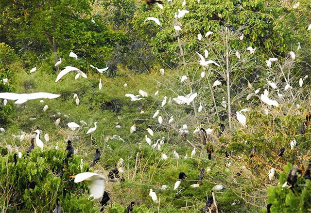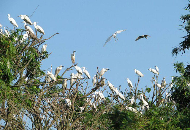 Hingga sekarang, kebun burung Bangau milik bapak Bay Thuyen luasnya 12 500 m2 dan jumlah burung Bangau dari beberapa puluh ribu ekor pada tahun 1997, sekarang bertambah menjadi 200 000 ekor. Menurut bapak Bay Thuyen, di daerah ini, ada lebih dari 20 spesies burung bangau. Tetapi yang paling banyak ialah kuntul kerbau, kuntul kecil, kokokan laut.
