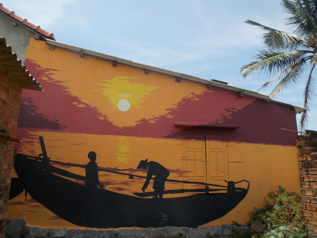 Sebelumnya, pada awal bulan Juni 2016, lebih dari 100 rumah sederhana dan tua di kecamatan Tam Thanh telah mengenakan satu baju baru dengan lukisan-lukisan tentang alam dan manusia dalam satu proyek temu pergaulan artistik masyarakat Republik Korea-Vietnam yang dilaksanakan oleh Komite Rakyat Kota Tam Ky dan Dana Temu Pergaulan Internasional Republik Korea. Bersama-sama dengan dinding, pagar dan jalan dari setiap rumah telah dihiasi oleh para pelukis dengan lukisan-lukisan dinding dan motif-motif yang berwarna-warni. Jalan-jalan kecil yang menuju ke laut tiba-tiba menjadi teramat eksotis. Kehidupan warga di daerah ini tampak menjadi lebih santai dari yang sudah-sudah, berbeda dengan situasi kehidupan yang sulit dari satu desa nelayan pantai di masa lalu. Yang lebih penting ialah desa lukisan dinding telah menarik kedatangan sejumlah besar wisatawan dan warga daerah mendapat keuntungan dari aktivitas wisata ini. Saudari Do Thi Cuc, orang yang bersama dengan kelompok teman sedang membuat foto di desa lukisan dinding Tam Thanh memberitahukan: “Warga membelanjakan sejumlah uang besar untuk melakukannya seperti itu dan ini juga merupakan ide yang membuat desa ini hidup kembali, sudah tidak seperti dulu lagi. Hal ini membuat daerah ini mempunyai pemandangan untuk tempat berwisata dan para wisatawan merasa eksotis dan kembali ke memori masa kanak-kanak”.