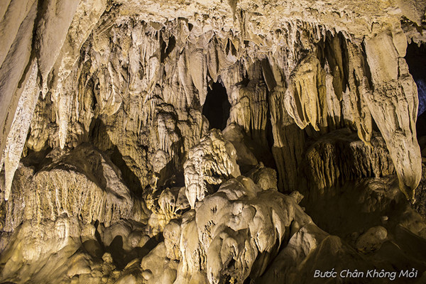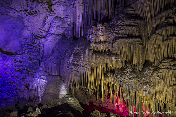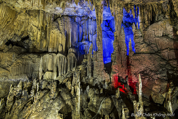 Stalagmit dan stalaktit dengan seribu satu bentuk di gua Lung Khuy
