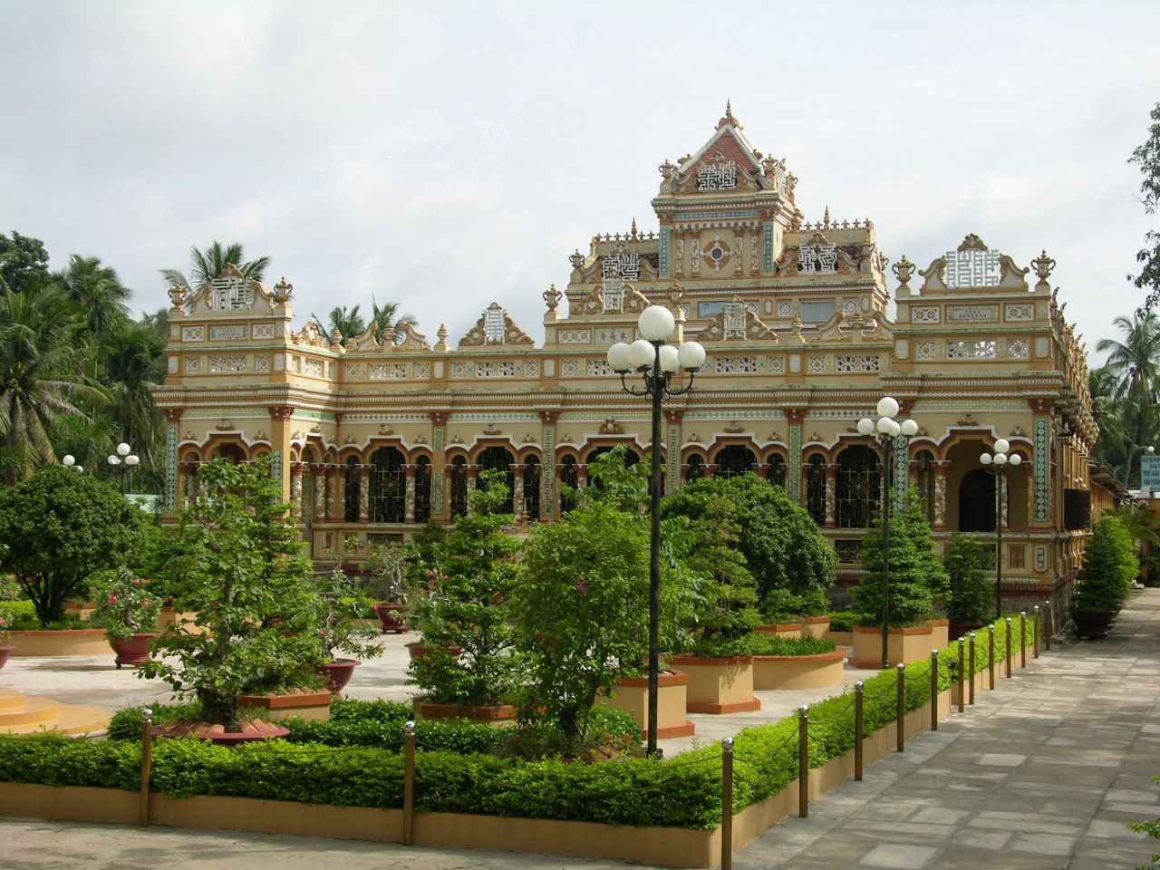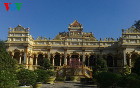 Pagoda Vinh Trang terletak di satu kebun buah-buahan seluas hampir 2 Ha di kecamatan My Phong, kota My Tho, provinsi Tien Giang. Menurut buku sejarah, pagoda ini adalah satu meru yang dibangun oleh bangsawan kabupaten Bui Cong Dat pada awal abad XIX. Dan pada tahun 1849, Upahjaya Thich Hue Dang, pengurus-nya membangun meru ini menjadi pagoda dan menggunakan nama pagoda Vinh Trang. Sesudah itu, pengurus penerus pagoda, Upahjaya Quang An-Chanh Hau membangun pagoda ini sekali lagi. Karena mengalami kerusakan berat akibat taufan pada tahun 1904, maka Upahjaya telah meminta kepada para Buddhis di sini menyumbangkan tenaga dan harta untuk memugar pagoda ini pada tahun 1907 dan mengundang pemahat Tai Cong Nguyen memikul tugas pekerjaan menghias dan membuat patung-patung pemujaan di pagoda ini. Mengalami perjalanan waktu, kepandaian dan ketulusan hati dari banyak generasi orang Vietnam telah menciptakan keindahan yang luar biasa dari pagoda sekarang ini. Upahjaya Thich Hue Minh, Kepala Pengurus Sangha Buddha Provinsi Tien Giang, pengurus Pagoda Vinh Trang memberitahukan: “Organisasi Guines Vietnam telah menetapkan pagoda ini sebagai salah satu di antara tempat-tempat wisata spiritualitas yang berkaliber nasional dan adalah salah satu di antara 100 tempat wisata yang paling mengesankan di Vietnam. Para wisdom dan wisman ketika datang mengunjungi provinsi Tien Giang semuanya tidak bisa masuk menjejakkan kaki di pagoda Vinh Trang. Pada hari Sabtu dan Minggu, pagoda ini penuh dengan wisatawan”.