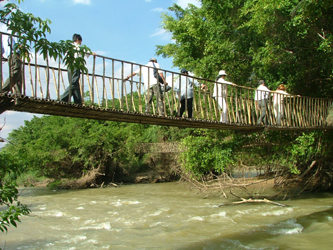 Dari jembatan gantung ini, menempuh satu ruas jalan dengan bus kira-kira 20 menit, wisatawan bisa mengunjungi zona konservasi taman nasional Yok Don dengan keindahan yang masih primitif. Pada sore, wisatawan bisa naik perahu dari kayu di danau untuk memandangi senjar. Pada malam hari, wisatawan bisa beristirahat di rumah-rumah panggung, menikmati acara-acara pertunjukan kesenian yang kental dengan sifat kerakyatan dari daerah Tay Nguyen.