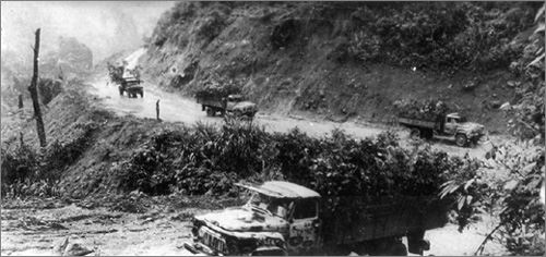 Mengangkut barang-barang di atas jalan Ho Chi Minh pada zaman dulu