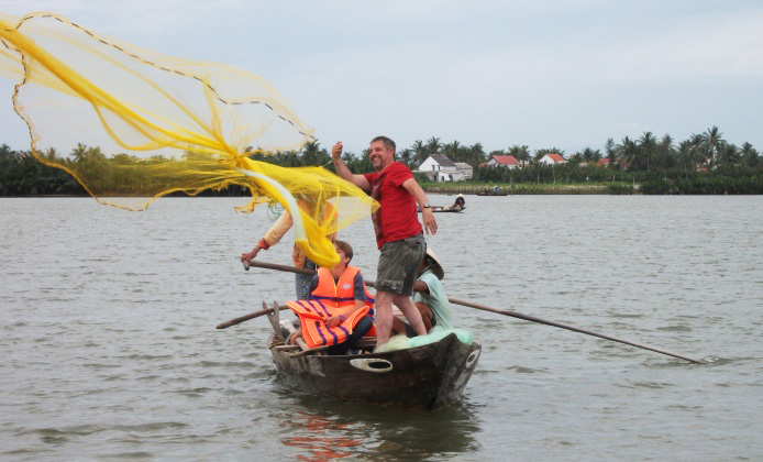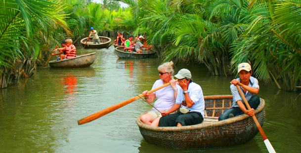 Sementara itu, jasa membawa para wisatawan mengunjungi hutan pohon nipah Bay Mau di kecamatan Cam Thanh, kota Hoi An dengan perahu bulat yang dibuat dari bambu, selama beberapa tahun belakangan ini juga disukai oleh banyak orang. Dari Kota Hoi An, Provinsi Quang Nam, mengarah ke udik sungai Hoai sejauh 3 Km, para wisatawan akan tiba ke hutan pohon nipah Bay Mau yang tergolong dalam sistim ekologi kegenangan asin di daerah Cua Dai. Di daerah ini, ada banyak pohon nipah yang hijau dan masih liar, cuaca-nya sehat dan sejuk. Saudari Yoon Young-joo, wisatawan asal Republik Korea bersama dengan keluaranya yang datang mengunjungi Desa Ekowisata Cam Thanh memberitahukan bahwa di daerah ini, ada banyak hal yang baru dan interesan. Dia mengatakan: “Saya melihat para warga di sini sangat akrab dan ramah, cuacanya juga sangat sejuk. Naik perahu bulat yang dibuat dari bambu, memandangi hutan pohon nipah, saya merasa sangat interesan. Saya juga sangat suka ketika melihat orang-orang melemparkan jaring di sungai. Mereka tampak laksana seniman dan menarik”.