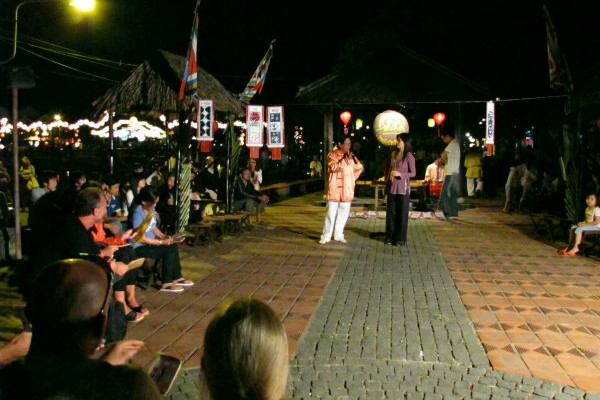 Para wisatawan mancanegara mendengarkan lagu rakyat Bai Choi