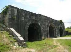 Goteri batu yang dipadukan dengan peluncur untuk mengangkut gumpalan batu digunakan bagi pembangunan benteng