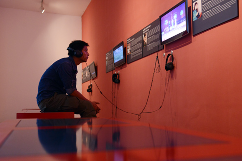 Banyak ruang pameran menggunakan layar televisi dan alat pendengar bagi para pengunjung