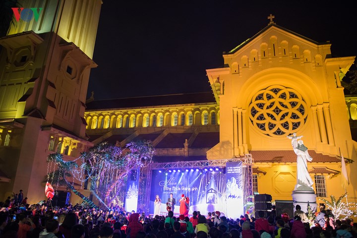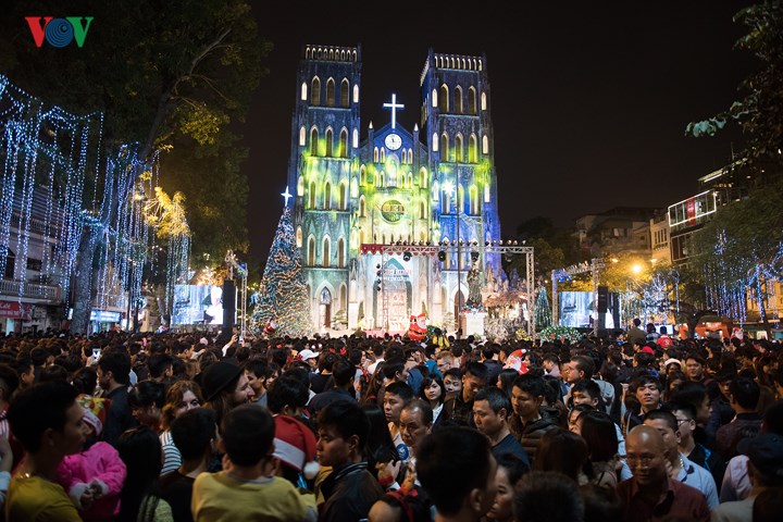 Cuaca musim dingin pada hari-hari akhir tahun, jalan-jalan yang ramai dengan dihias dengan lampu dan bunga semuanya menciptakan suasana hangat. Banyak gereja di Kota Ha Noi telah selesai dihias untuk siap menyambut satu musim Natal yang aman dan berbahagia.