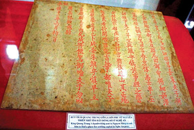 Autograf Quang Trung yang dikirimkan kepada guru Nguyen Thiep untuk minta tolong mencari bumi guna membuat ibukota di provinsi Nghe An