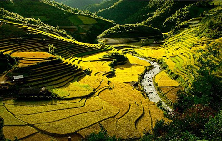 Terletak kira-kira 80 Km dari kota Yen Bai sebelah Barat, daerah pesawahan Muong Lo berlokasi di tengah-tengah jantungnya kota madya Nghia Lo dan kebupaten Van Chan. Muong Lo adalah daerah pesawahan yang besarnya nomor dua di daerah pegunungan di Vietnam Utara setelah Muong Thanh, di provinsi Dien Bien. Kalau menempuh jalan raya nomor 32, wisatawan ketika sampai ke daerah Muong Lo dengan keheran-heranan menyaksikan keindahan daerah pesawahan terasering berpadi masak yang bertanah landai ke arah gunung. Anak sungai Nam Thia yang menerobos lembah seperti sehelai kain sutra yang meliuk-liuk di tengah-tengah pesawahan padi kuning. Dari atas ketinggian kalau melihat ke bawah, lembah Muong Lo laksana daerah cekungan yang dikelilingi oleh barisan gunung-gemunung yang sepanjang tahun diliputi awan.