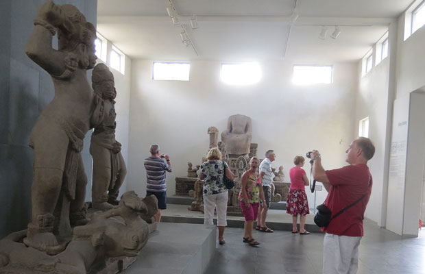 Pada Minggu sore pertengahan bulan November ini, arus manusia yang datang ke Museum ukiran Cham tampak lebih banyak. Museum Ukiran Cham di kota Da Nang memiliki kira-kira 2 000 benda besar dan kecil, diantaranya ada kira-kira 500 benda yang sedang dipamerkan. Pada 1915, orang Perancis telah membangun museum ini, mengoleksi, menyimpan dan memamerkan benda-benda tentang seni mengukir dari Kerajaan Champa yang ditemukan di beberapa candi dan benteng Cham di kawasan pantai Trung Bo Selatan dan semua provinsi di daerah Tay Nguyen. Sejumlah besar benda yang bernilai tentang kebudayaan Cham telah dipamerkan menurut kawasan sesuai dengan geografi - tempat dimana benda-benda itu ditemukan. Dengan cara pameran seperti itu, akan membantu para wisatawan mengetahui ciri khas dan selar tentang arsitektur Cham di tiap-tiap daerah yang diciptakan oleh cara hidup dan kebudayaan. Seorang wisatawan Jerman memberitahukan: “Saya cukup menyukai museum ini. Pemandu museum telah memperkenalkan kepada kami tentang benda-benda bersejarah yang dipamerkan di sini. Sangat luar biasa interesannya. Saya sangat terkesan ketika mengunjungi Museum ini. Mudah-mudahan, ketika datang ke sini waktu mendatang, kami akan diketahui lebih banyak lagi tentang informasi tentang kebudayaan Cham”.