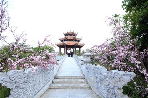 Hal khusus yang menarik para wisatawan di pagoda Nom ialah pemandangan alamnya yang longgar dan luas dengan banyak bangunan khas. Tempat Ibu Kwan Im di pagoda ini berlokasi di tengah-tengah danau laksana satu kelopak teratai yang megah. Yang menuju ke tempat Ibu Kwan Im ialah jembatan dari batu yang berbentuk busur meniru jembatan Nom lama, di depan jembatan ini ada dua menara berbentuk kelopak teratai 9 lapis yang terbuat dari perunggu, sehingga menciptakan satu kompleks bangunan.