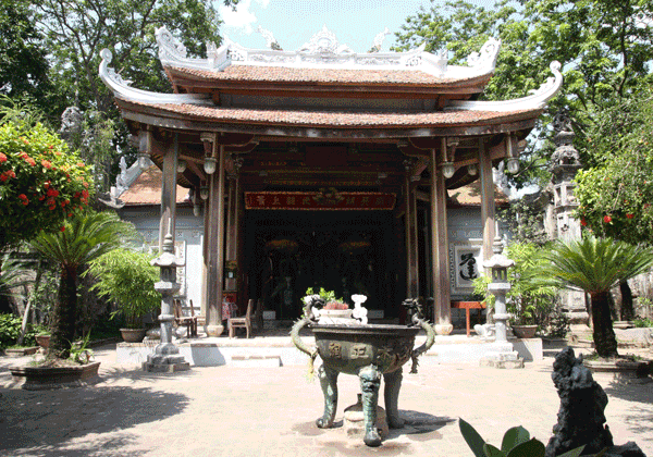 Setelah dua jam terhanyut terapung-apung di sungai Merah, pada jam 9 pagi, tempat pertama yang dimana sampan mendarat ialah kuil Dam, kuil Dai Lo. Meski terletak tidak jauh dari jantungnya kota, tapi tempat ini masih tetap mempertahankan banyak ciri-ciri kuno seperti sumur, lapangan balai desa, pohon beringin. Kuil Dam juga merupakan tempat wisata spiritualitas yang ideal dengan tata ruangan yang luas, sejuk. Wisatawan bisa berjalan kaki keliling pekarangan balai desa, menikmati teh dan bermacam jenis kue khas. Semuanya menciptakan satu rasa yang selamat. Saudari Ha An, seorang yang suka membuat foto memberitahukan: “Pemandangan daerah pedesaan di sini membuat saya merasa aman tenteram. Yang lebih penting ialah di sini saya sudah membuat cukup banyak foto yang indah. Sumur, lapangan balai desa atau jalan-jalan kecil di sini semuanya membuat saya punya rasa tersendiri. Saya benar-benar merasa aman tenteram”.