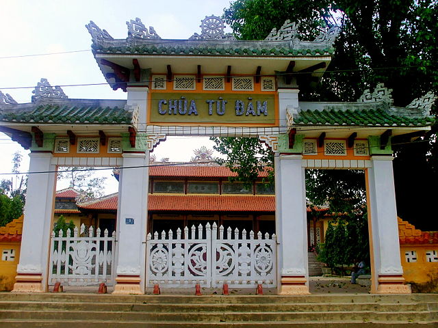 Tempat pertama yang saya singgahi ialah pagoda Tu Dam. Pagoda ini berlokasi di kecamatan kota Truong An, kota Hue dan dibangun pada akhir abad ke-17. Pagoda ini punya tiga ruang dan dua sentong, di dua sisi pagoda ini ada dua tempat untuk memasang gentah dan beduk. Di tengah-tengah pekarangan, ada patung setengah badan dari seorang cedekiawan yang bertapa yaitu Tam Minh yang banyak berjasa terhadap pagoda dan terhadap gerakan renaisans dan perkembangan Buddhisme Tiongkok-Vietnam. Di dalam pagoda, ada tempat utama untuk memuja Sang Buddha Sakiamuni, di dua sisinya ada dua relief Kuan Im Boddhisattwa yaitu Van Thu dan Pho Hien. Arsitektur pagoda ini tidak utuh sepetri bentuk-bentuk semula dari pagoda-pagoda di Vietnam Utara misalnya pagoda Thay, pagoda Tay Phuong, pagoda Keo, pagoda Mia. Saudari Mai Thanh Huong, wisatawan kota Hanoi memberitahukan: jika yang datang ke kota Hue untuk tahu mengapa kota Hue disebut sebagai ibukota pagoda dengan ratusan pagoda besar dan kecil yaitu bicara tentang langgam dan semangat Buddha daerah Hue, maka sebaiknya mengunjungi pagoda Tu Dam. Dia mengatakan: “Ketika datang ke pagoda ini, saya merasa bahwa kehidupan sangat tenteram, orang-nya ramah. Khususnya pagoda-pagoda ini membuat saya merasa lebih santai”.