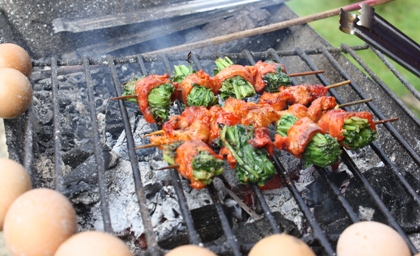 Seorang dengan gairh menikmati masakan-masakan panggang Sapa