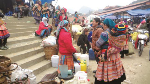 Pasar awal tahun menjadi lebih ramai dan gembira. Pada pagi-pagi benar, warga di semua penjuru berduyun-duyun datang ke sini dengan suara orang panggil-memanggil dan suara tawa dan orang bicara yang membuat suasana jadi meriah. Ketika udara lebih terang, seluruh pasar tampak seperti satu kebun bunga dengan bermacam-macam rok yang berwarna-warni dari para gadis etnis minoritas Mong.