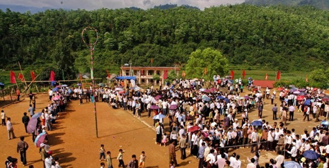 Permainan-permainan rakyat yang mengakhiri Pesta Balai Desa Ngoc Tan menyerap perhatian dari semua pengunjung ialah permainan melemparkan Con. Cara melemparkan Con merupakan perkembangan ritual menyedakahi mata hari dan bulan dari para petani di daerah ini. Ketika ikut melemparkan Con, semua orang juga merasa antusias, bukan karena menang atau kalah, maka demi keinginan tentang satu tahun yang aman tenteram. Bapak Sam Xuan Sinh, sesepuh Desa Ngoc Tan, Kecamatan Ngoc Quan memberitahukan: “Melemparkan Con adalah permainan yang memberikan kegembiraan kepada desa pada hari-hari Musim Semi, hari-hari raya dan upacara pernikahan. Ini merupakan kesempatan bagi generasi muda untuk bisa ikut dan lebih mengerti tentang permainan-permainan rakyat dari etnis-etnis pada umumnya dan orang etnis minoritas pada khususnya”.
