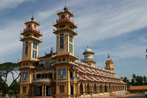 Di provinsi-provinsi daerah Nam Bo Timur, provinsi Tay Ninh adalah salah satu diantara provinsi-provinsi yang mempunyai pemandangan alam yang indah, banyak bangunan arsitektur, cagar sejarah tersohor di seluruh negeri. Terletak kira-kira 4 kilometer dari kota madya Tay Ninh di sebelah Timur, Gedung Suci agama Buddha mazhab Cao Dai adalah satu bangunan arsitektur terkenal yang dibangun pada tahun 1426 di areal seluas satu kilometer persegi. Gedung suci ini adalah manifestasi yang harmonis antara arsitektur Timur dengan Barat dengan atap yang melengkung dan motif yang dihias secara luwes dan halus.