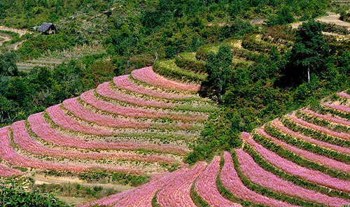 (VOVworld) - Musim gugur pada bulan Oktober dimulai musim bunga gandum kuda berkembang. Di semua bukit provinsi Ha Giang (Vietnam Utara), berkembangnya warna bunga yang kemerah-merahan menggelarkan diri di tengah-tengah embun pada pagi hari. Alam provinsi Ha Giang tampaknya mengenakan baju bunga gandum kuda. Kalau sekali datang mengunjungi provinsi Ha Giang, turis tidak bisa tidak mengenangkan hutan-hutan bunga gandum kuda yang memanjang jalan.
