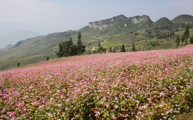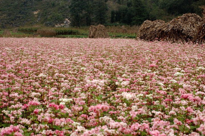 Bunga gandum kuda mekar berkembang pada Oktober dan November. Ketika datang ke provinsi Ha Giang, hanya kelihatan daerah dataran tinggi batu yang berdiri tegak yang dihias dengan hutan-hutan gandum kuda yang berlapis-lapis, sehingga membuat ruang di daerah ini menjadi lebih eksotis dan romantis, menggandoli kaki turis. Yang memanjang di 4 kabupaten pegunungan yaitu Quan Ba, Yen Minh, Meo Vac dan Dong Van, ketika menempuh jalan yang berliku-liku di bawah kaki gunung, dimana-mana juga kelihatan warna bunga gandum kuda. Saudari Mai Huong, turis kota Hanoi memberitahukan bahwa dulu hanya tahu akan provinsi Ha Giang dengan daerah dataran tinggi batu, tiang bendera Lung Cu, villa keluarga marga Vuong, puncak gunung Ma Pi Leng yang legendaris dan jalan bahagia. Sekarang ketika datang ke provinsi Ha Giang, semua orang juga merasa heran tentang keindahan bunga gandum kuda. Dia mengatakan: “Ketika datang ke provinsi Ha Giang, Anda akan sangat mengesankan dan sangat mengagumkan warga di daerah ini. Di sekitarnya, baru ada barisan gunung batu yang berbentuk telinga kucing yang diselang-seling ialah bidang tanah tanaman jagung dan kelihatan warga di daerah ini telah mengatasi kemiskinan dan kesulitan untuk hidup. Dan diantara gunung-gunung batu yang berbentuk telinga kucing, ada bidang tanah yang rata, warga menanam pohon gandum kuda. Di satu sisi ialah gunung batu yang berbentuk telinga kucing dan di sisi yang lain ialah sawah bunga gandum kuda, Anda akan merasa terkesan dan interesan tentang pemandangan alam itu. Satu ruang yang sangat romantis berada di latar belakang cuaca yang keras untuk melihat alam dan kehidupan tetap bisa eksis di daerah ini”.