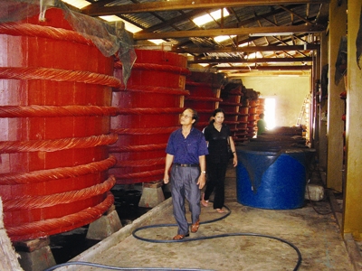 Wisatawan mengunjungi satu basis produksi kecap ikan teri di pulau Phu Quoc