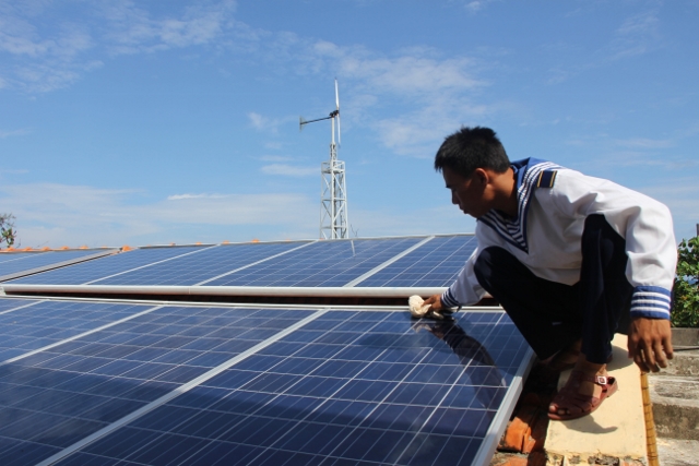 Sistim listrik tenega surya memasok cukup listrik untuk aktivitas kehidupan di pulau Sinh Ton Dong