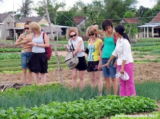 Dari sektor kota kuno Hoi An, wisatawan biasanya datang ke desa penanaman sayur-sayuran Tra Que dengan sepeda. Selama lebih dari 10 tahun ini, petani penanam sayur-sayuran di desa Tra Que telah beken dengan citra setiap rombongan wisatawan mancaneara yang mengunjungi desa ini dengan sepeda dan dengan sukarela menjadi petani penanam sayur-sayuran. Desa penanaman sayur-sayuran Tra Que dengan bermacam jenis sayur harum khas yang ditanam menurut teknologi penanaman sayur-sayuran organik telah sungguh-sungguh menyerap kedatangan wisatawan. Ibu Le Thi Binh, penanam sayur-sayuran di desa Tra Que memberitahukan: “Di sini, tidak pernah menggunakan obat perangsang pertumbuhan, tapi hanya pada pokoknya menggunakan rumput sungai. Jika membawa sayur dari tampat lain kemudian disini ditanam, maka jenis sayur –sayuran ini juga lebih harum dari pada sebelumnya”.