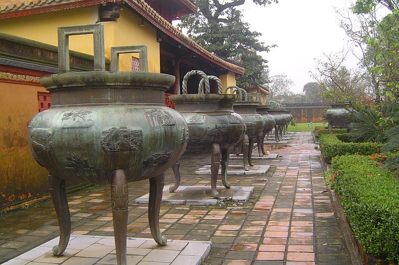Khususnya, kompleks daerah The Mieu adalah tempat yang menimbulkan kesan bagi para pengunjung dengan perangkat 9 bokor yang paling besar di Vietnam. Setiap bokor yang dibuat dari perunggu mewakili seorang raja dari dinasti Nguyen. Di atas bokor itu, ada bermacam-macam ukiran-ukiran dengan motif-motif yang menonjol untuk memuji keindahan Tanah Air Vietnam dari beberapa abad lalu.