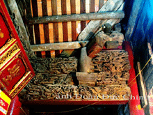 Di dalam kuil ini ada 48 tiang dari kayu lim yang terletak di batu hijau. Soko guru tingginya 4,65 meter, kelilingnya 1,63 meter. Tiang-tiangnya diperkuat dengan kayu-kayu yng melintang dan membuju, di ujung-ujungnya diukir dalam bentuk kepala naga.Di dua ujung ruangan dipasang dua papan yang saling berhadapan dengan teruliskan aksara Han: “Nam Son Tinh Tho” artinya Tanah Air Vietam yang berkesinambungan dan “Dia cuu thien duong” artinya Bumi Vietnam yang berkesinambungan dan langit-nya panjang.