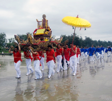 Upacara pengarakan tandu pada Pesta Kuil Tra Co