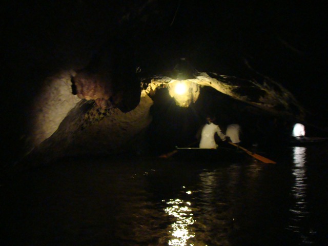 Dengan duduk di perahu, wisatawan tidak hanya memandangi pegunungan batu kapur dengan seribu satu bentuk yang aneh, melainkan juga bisa melihat tumbuh-tumbuhan di bawah permukaan air.Tapi hal yang lebih menarik bagi wisatawan ialah gua-gua. Saudari Nguyen Xuan Nguyen, pemandu wisata memberitahukan: “Ketika masuk gua yang pertama, gua ini bernama gua Ca yang panjangnya 127 meter, lebarnya 20 meter. Jika masuk ke dalam gua ini, di depan gua ini, ada banyak stalaktit ada yang berbentuk seperti awan terbang dan ada yang mengeluarkan tetesan air yang bisa dimisalkan seperti payudara ibu. Hal yang khusus ialah di gua ini, jika melihat dari luar gua ini sangat gelap, tapi semakin masuk ke dalam gua ini, semakin terang dan tetap bisa melihat jalan”.