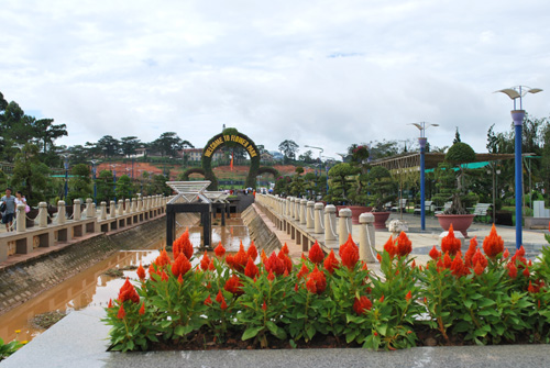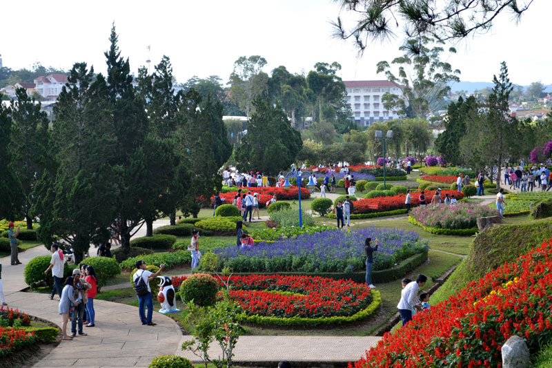 Taman Bunga kota Da Lat sekarang merupakan tempat yang memamerkan kumpulan bunga paling besar dan paling lengkap di Vienam dengan ratusan jenis bunga bermacam-macam warna. Dengan kompleks yang luasnya kira-kira 7000 meter persegi dan posisi yang kondusif dan terletak di ujung danau Xuan Huong, taman bunga ini menyerap sejumlah besar turis setiap kali datang ke kota Da Lat. Para turis akan terkesan sejak saat permulaan ketika melihat pintu gerbang Taman Bunga. Pintu gerbang ini dirancang terdiri dari 3 lingkup bunga dan dirakit dengan ratusan pot bunga kecil-kecil. Di sepanjang dua tepian jalan yang dirancang dengan sistim air mancur, sehingga menciptakan suasana yang sejuk. Kadang-kadang, ada kendaraan-kendaraan berkuda yang penuh dengan bunga-bunga yang mudah dipandang mata. Saudara Bui Huyen Phuong, turis asal ibukota Hanoi memberitahukan: “Tempat pertama yang saya pilih ketika datang kota Da Lat ialah taman bunga Da Lat.Kesan pertama ketika datang ke tempat ini ialah satu ruang yang luas dengan bermacam-macam jenis bunga. Di dalam kompleks taman bunga Da Lat, ketika melangkah di tempat ini, kelihatan penuh dengan bunga, dengan cara menghiasi sangat indah sehingga para turis bisa berpotret dengan keluarga untuk kenangan”.