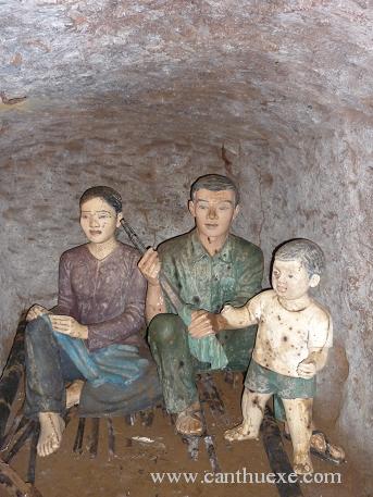 Selama saat-saat mengalami perang yang sengit, untuk menjamin kekuatan dan siap bertempur, warga dan prajurit-prajurit di terowongan biasanya tidak keluar. Karena, terowongan sendiri telah menjadi “satu dunia” sendiri untuk menjamin aktivitas-aktivitas kehidupan minimal. Tidak ada orang yang bisa membayangkan bahwa dalam poros utama yang panjangnya kira-kira 2 Km, pada saat yang paling banyak ialah ada kira-kira 1 200 orang yang tinggal hidup di terowongan ini. Angka ini semakin menunjukkan kekuatan yang tak kenal tunduk dari orang Vietnam dalam saat-saat mengalami perang di bawah hujan bom dan amunisi. Saudari Le Thi To Hoai memberitahukan: “Ada banyak rombongan yang datang sudah mencaritahu tetnang situs peninggalan sejarah sebelum datang berwisata, tapi juga ada rombongan-rombongan yang belum tahu apa-apa. Ketika datang ke daerah ini, mereka punya kesan yang luar biasa. Ada rombongan wisatawan Amerika Serikat atau negara-negara yang pernah ikut serta dalam perang di sini, mereka fikir bahwa di sini memang ada gua untuk menghindari bom dan amunisi, tapi tidak mengira terowongan itu besar seperti itu. Mereka juga tidak bisa mengira bahwa hanya dengan tangan-tangan, orang-orang lugas yang menggunakan alat-alat sederhana telah membuat satu sistim mencegah dan menghindari bom dan amunisi dan khususnya bisa menghindari bermacam-macam jenis bom modern dari Amerika Serikat”.