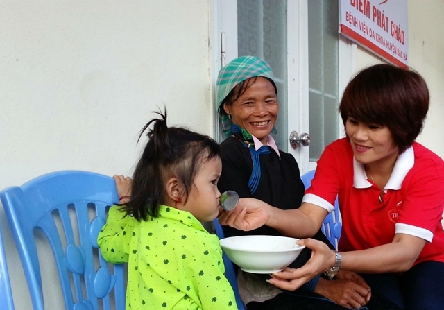 Selama hampir dua tahun ini, pada pagi hari Senin, Rabu, Jumat dan Minggu setiap pekan, para pasien miskin di Rumah Sakit Umum kabupaten Bao Thang dapat menikmati hidangan bubur yang enak dan masih panas yang dimasak oleh saudari Nguyen Thi Hien dan para anggota Kelub “Bubur kasih sayang” dan dihidangkan kepada setiap orang. “Sesuap pada saat lapar sama dengan sebungkus pada saat kenyang” adalah pesan yang disampaikan oleh Kepala Kelub amal “Bubur kasih sayang” Nguyen Thi Hien kepada orang-orang yang menjumpai kesulitan dan bernasib malang dalam kehidupan melalui aktivitas amalnya. Saudari Nguyen Thi Hien mengatakan: “Saya telah menjadi guru di daerah pedalaman dan daerah pelosok selama 10 tahun, maka saya menyaksikan banyak orang yang bernasib malang dan menjumpai banyak pelajar miskin. Pada waktu itu, saya juga senantiasa memasak nasi untuk para pelalar di sekolah. Kemudian, ketika merawat adik laki-laki saya di rumah sakit, saya melihat adanya program nasi untuk amal, saya melihat bahwa ini adalah satu aktivitas yang sangat bermakna dan dari situ saya mulai memasak bubur untuk amal”.