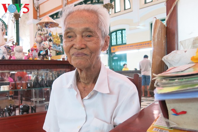 Sudah berpuluh-puluh tahun ini, kakek yang berusia 87 tahun, Duong Van Ngo telah melakukan pekerjaan di samping papan yang bertuliskan “Tempat membimbing dan membantu menuliskan surat” yang dipasang di sebuah meja. Di sekitarnya selalu ada beberapa orang yang duduk menunggu untuk meminta dituliskan surat dalam bahasa Inggris atau Perancis. Pada pagi hari itu, saudari Ho Thi Hong, warga kecamatan nomor 7, distrik nomor 8 menemui bapak Duong Van Ngo sangat dini. “Minta tolong bapak beritahukan apakah ini surat pos untuk saya atau bukan. Bapak lihat apakah semuanya untuk saya. Rumah Anda di distrik mana. Ya, rumah saya di kecamatan 7, distrik 8”.