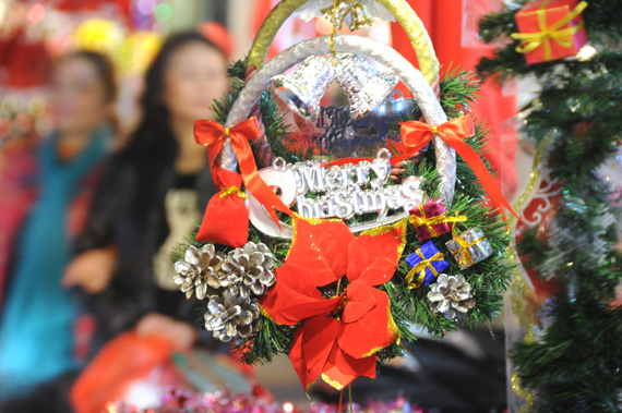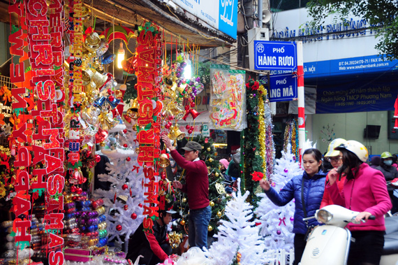 (VOVworld) - Selama beberapa hari ini, suasana Natal yang bergelora telah melanda semua jalan di kota Hanoi. Citra pohon Natal, Santa Klaus, rusa kutub beserta lagu-lagu terkenal "Jingle Bell" bergema di semua toko, super market, dll. Berbagai kado Natal yang membawa pesan-pesan kasih sayang sedang diberikan banyak orang kepada sanak keluarga dan orang yang dia cintai menjelang satu musim Natal yang aman sentosa dan berbahagia ini.