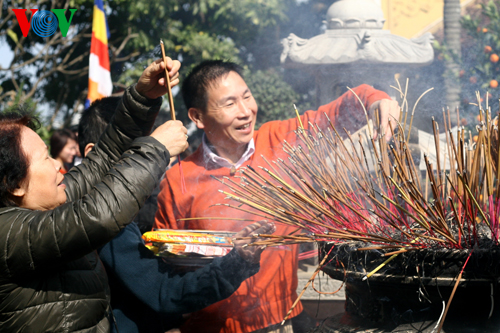 (VOVworld) - Datang ke pagoda untuk membakar hio dan berdoa pada awal tahun merupakan satu ciri tradisional yang indah dari rakyat Vietnam sejak dahulu kala. Banyak orang berdoa untuk meminta satu tahun yang sehat walafiat untuk sanak keluarganya, meminta kebahagiaan, kesuksesan dan ketenteraman.