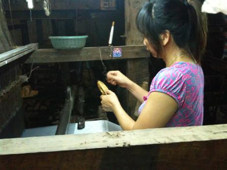 Dengan berbagai produk dari sutra yang dipajang di depan toko
