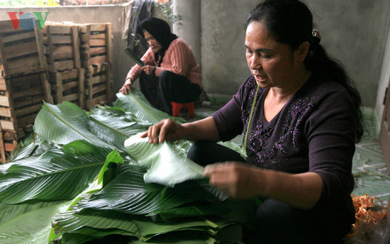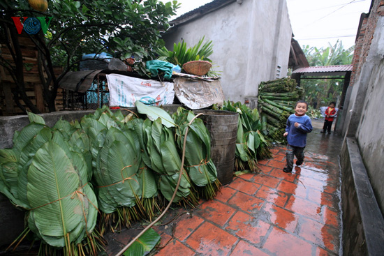 | Daun Dong ( untuk membungkus Kue Chung) diangin-anginkan di alaman rumah |